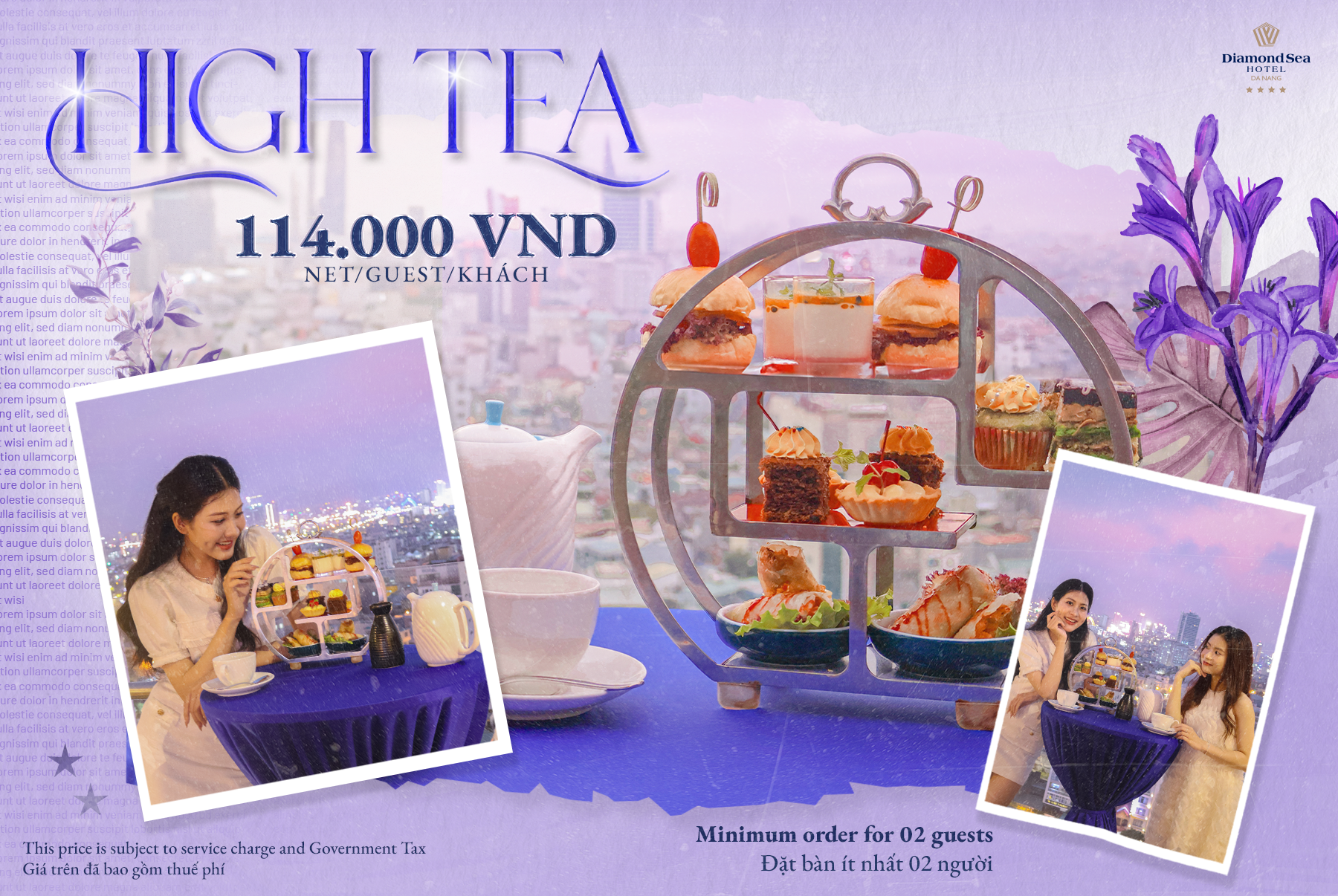 Sau bao bộn bề của cuộc sống hối hả, thưởng thức trà chiều là khoảng thời gian quý giá để sống chậm lại, thư giãn, chiêm nghiệm và trải nghiệm. Chỉ với 114.000 VND net/khách, ngất ngây trong ánh chiều tà diễm lệ và làn gió xuân se lạnh thoảng qua khi thưởng thức những loại bánh ngọt ngào và món ăn nhẹ ngon đúng điệu tại Diamond Sea Hotel. Thử ngay bánh burger mini với vỏ bánh mềm mại và thịt nguội hảo hạng. Nếm vị ngọt tươi mát của panna cotta, fruit tart, bánh sô cô la hay bánh muffin. Trải nghiệm một chút hương vị Việt với gỏi cuốn đậm đà.